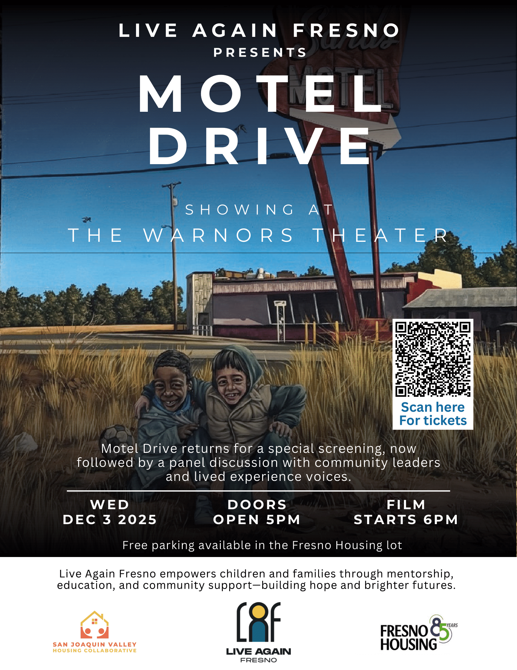 EVENTS Motel Drive Sponsorship Opportunities Buy Event Tickets Date Wednesday, Dec 3, 2025 Time Doors open 5pm | Film starts 6pm Motel Drive returns for a special screening, now followed by a panel discussion with community leaders and lived experience voices. Event Flyer